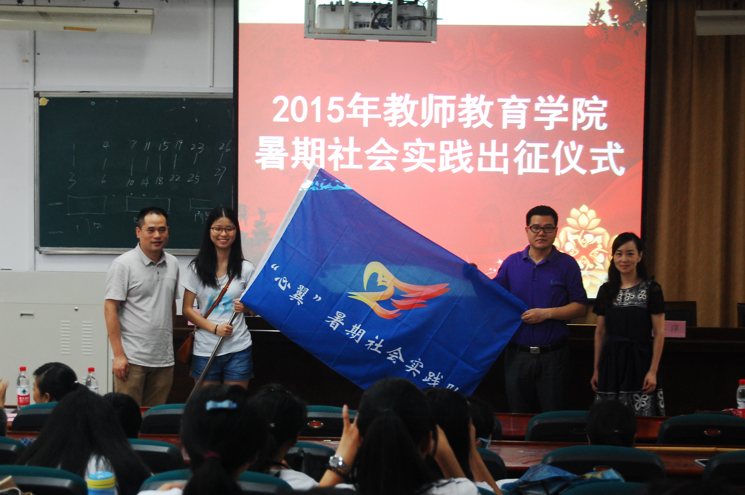 暑期社会实践活动出征。高高飘扬的实践队旗,昭示着我院2015年暑期社会实践队员踌躇满志、即将踏上新的征程!