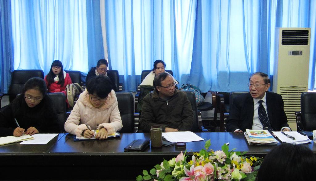 上午专场中,参加活动的有本院的彭小明副院长,瓯海实验小学、瑞安安阳实验小学等实习基地的部分教师和部分小教专业师生。会上贾老师指出了小学语文教育一直存在的低效或无效等问题,并用各方的评价点出产生这些问题的原因。此后,就“语文”这个科目阐述了自己的观点,认为语文是一门培养语言文字应用能力、提升综合素养的实践性课程;并以《雪地里的小画家》、《脚印》、《十里长街送总理》等经典课文为例做了教材解读,让在座师生充分了解到如何用课文培养学生的语言能力和综合素养。接下来贾老师又从“教师如何备好一堂课”的角度切入,提出要想备好一堂课,必先“背”好一堂课,只有教师对教材充分的理解和熟悉,才能在课堂上游刃有余;提出要做到“语文课堂三实”——真实、朴实和扎实,点出了语文课堂的本真内涵,并用《爸爸的老师》等课文做简析。会后讨论环节贾老师就语文教学的核心等问题与在座的各位老师交换了看法。