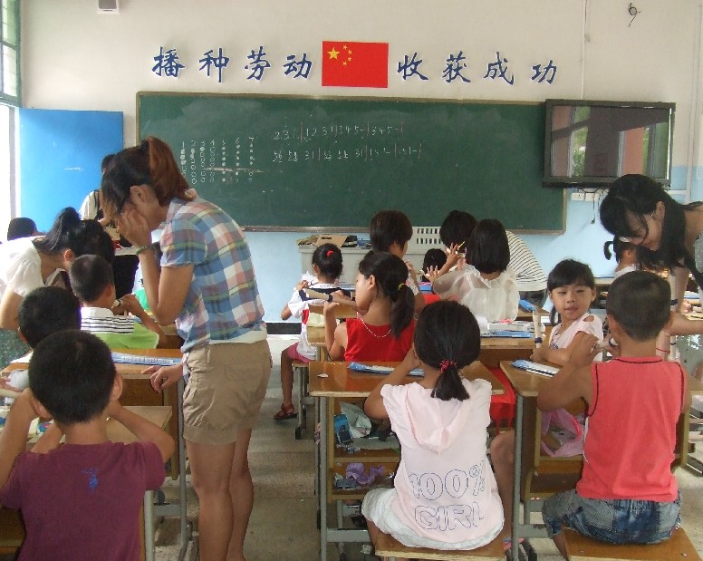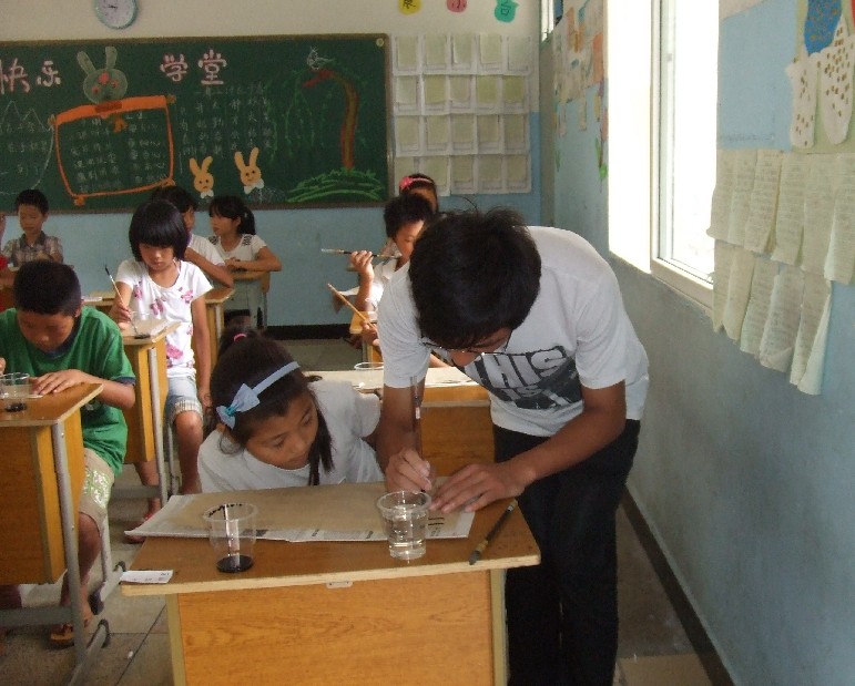 上午上完美术、书法两堂课,由于孩子们平时接触得并不多,画得很抽象,写得很创意。但看着他们认真的眼神,让我们看到了这些作品的美丽之处。他们也许不是最好的,但却是最努力的。下午的语文和辅导作业课,孩子们配合得也很积极。淳朴、可爱、真诚是这些孩子给我们的最大印象。晚上的交流会议照常举行。大家交流了一天的心得,为更好的帮助这里的孩子不懈努力。生活虽然很艰苦,但我们知道,当孩子们经过我们身边,叫上一声“老师”时,我们的心了是甜甜的……