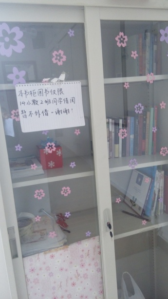 2015年11月,书柜“住进”了我们教室,我们读书小组便给它“洗了”身子,并陆续地装入不少东西——从图书馆借的书、老师与小部分同学所捐之书、还有一些复印资料。我们的读书小组分为纸质阅读与电子阅读两大块,书柜为我们小组提供了同学共享的材料。可能是由于书籍的种类单调,书柜里的书无人问津,直至期末。