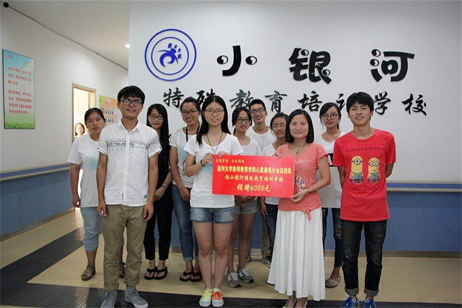 老师先带着我们参观了新布置的阅览室,阅览室里放着一部分我们给孩子捐赠的图书。但由于大部分物资还在途中,所以阅览室还没有正式落成。捐赠仪式比较简单,许利芬校长在接过捐赠牌后,和我们一起合影。捐赠仪式过后,校长向我们表示了感谢:“小银河是一个特殊孩子的培训基地,近年来得到了社会各界的关心和支持。你们给孩子带来的不仅仅是物质上的帮助,更是在孩子的心灵上撒下了希望的种子,感谢你们!”其实,应该感谢生活,让我们能帮助需要帮助的人。