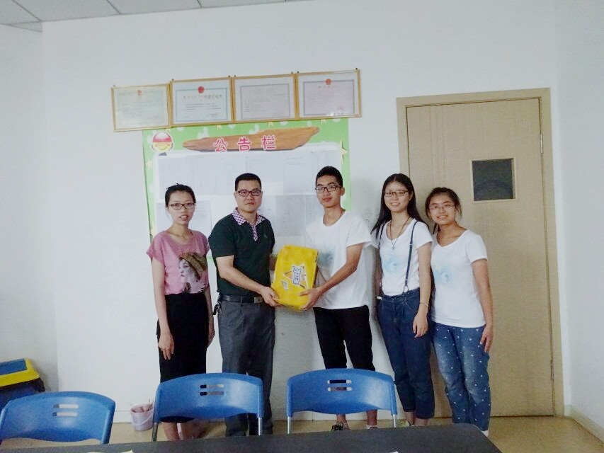 老师们热情地和每位同学打招呼,还给我们带了饮料、糕点、水果等慰问品。在短暂的寒暄过后,我们一行人到办公室进行交流。我们和院长围桌而坐,大家向老师们汇报了一周的活动情况,分享了自己的心得。