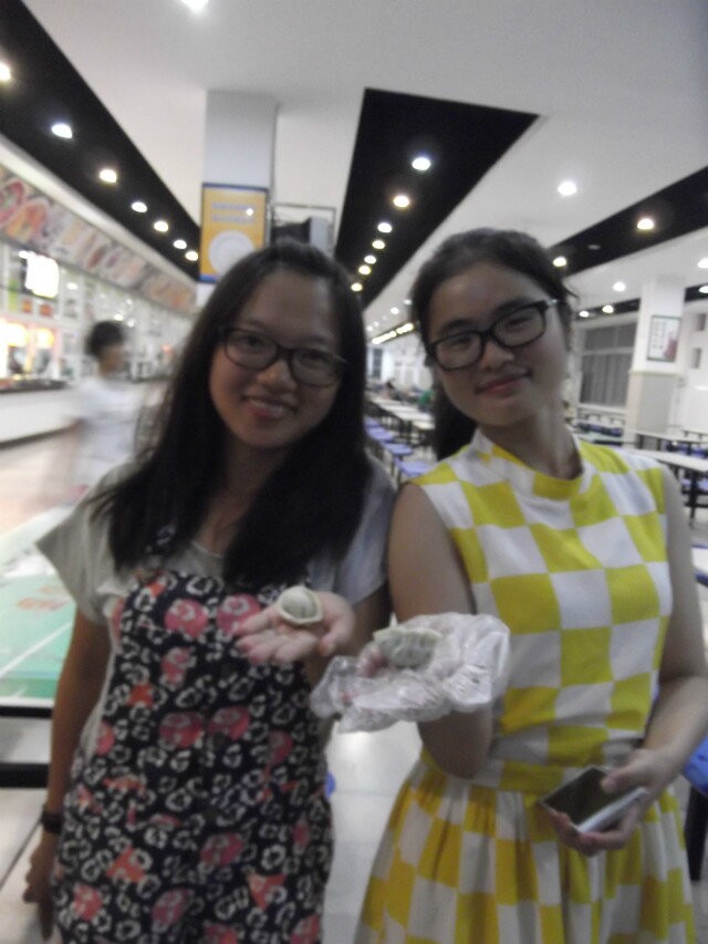 第二项活动是班委精心准备的包饺子比赛。全体同学自由结合,分成六个小组来包饺子。饺子皮和馅事先已经请食堂工作人员帮忙准备,同学们要做的就是DIY各具特色的饺子。女生们尤其活跃,纷纷包出了兔子形、元宝形、枣子馅等别致、喜庆的各色饺子。男生在班主任的提议下作为评委,评出了优胜的三个小组。最后食堂师傅帮忙煮好了饺子,班主任亲自掌勺,一人一碗,大家迅速地将数百个“战斗成果”消灭掉。之后,同学们在班委的组织下进行了竞猜和赛歌活动。