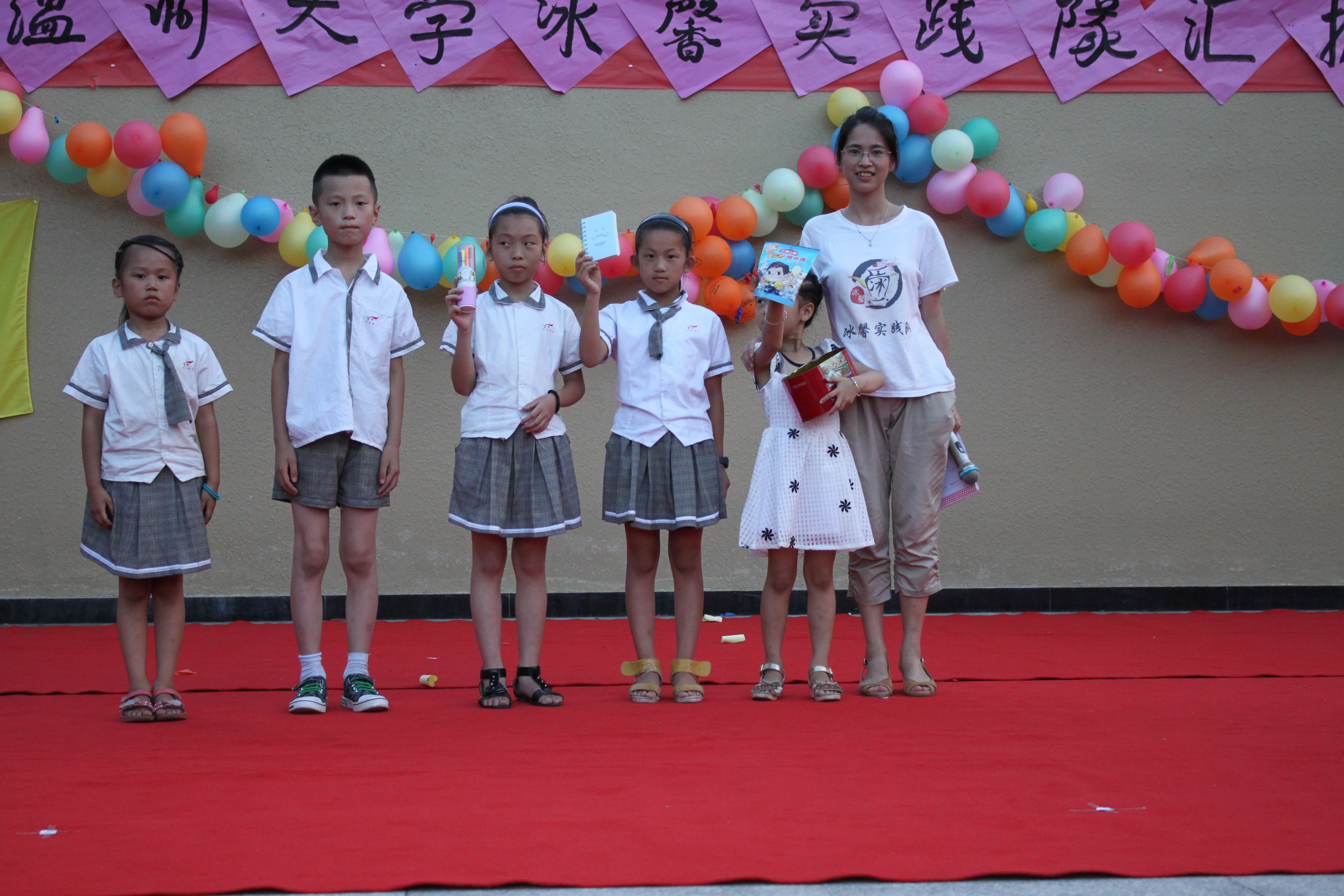 6点整,伴随着美妙的音乐声,实践队的演出正式开始。首先亮相的是融时尚与创意为一体的T台表演,孩子们穿着老师们给他们设计的衣服,在舞台上走秀;接着还有孩子柔似水的“波浪”舞、激情洋溢的兔子舞、饱含真挚的朗诵、传承经典的《三字经》……孩子们用优秀的演出来展示他们的实践成果,用精彩的表现向亲爱的老师道别。当然,除了节目,队员们还安排了颁奖典礼褒奖在夏令营期间评选出的学习达人,设计游戏环节调动现场气氛……