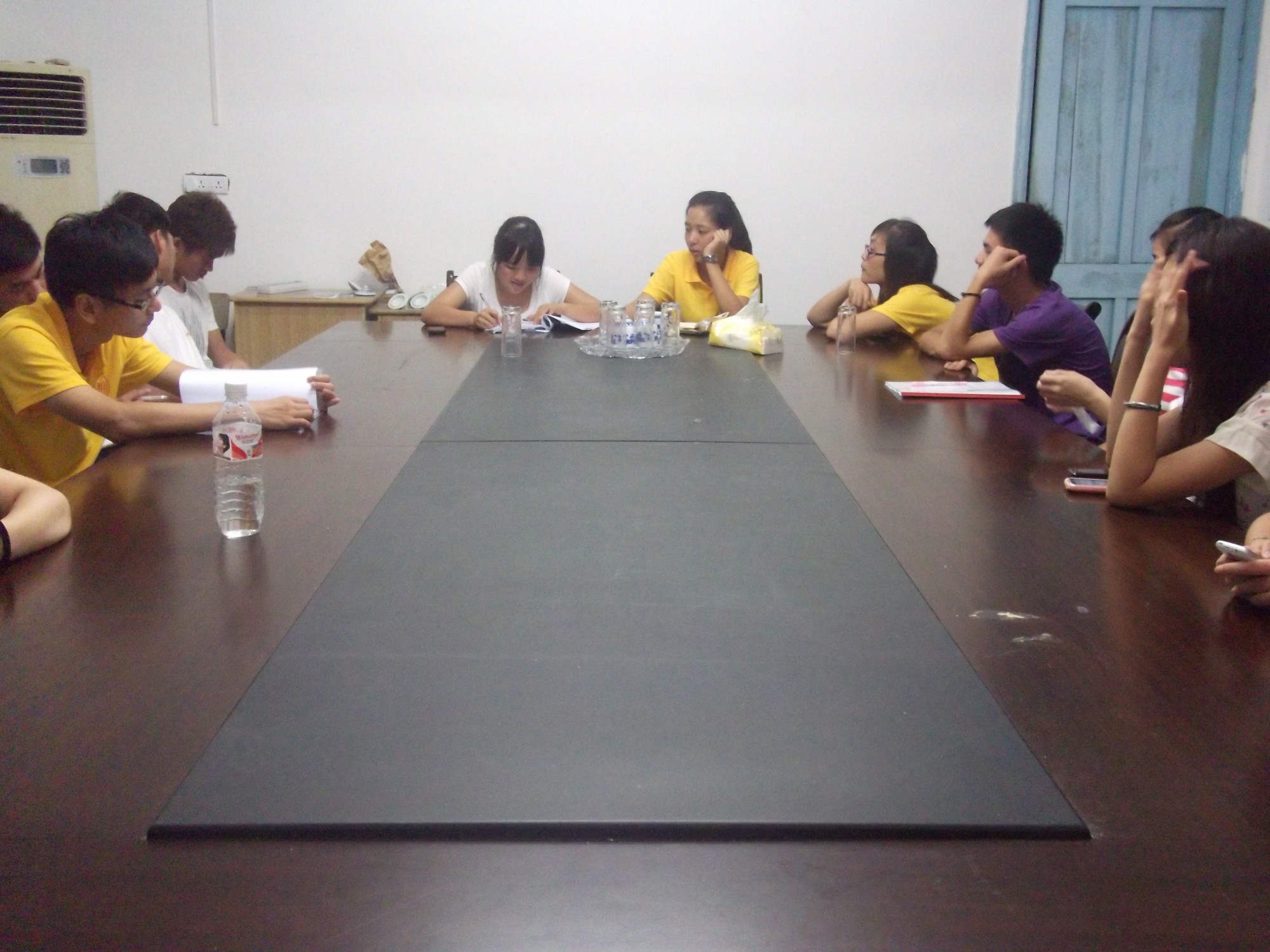 会议伊始,队长周瑞先向大家征询了暑期社会实践报告和思想政治报告的填写情况,提醒大家尽快完成报告的填写。随后,她还向各位队员说明了温州市侨界留守儿童快乐营毕营仪式的相关注意事项,并希望各位队员在接下来不足一个星期的时间里打起十二分的精神,积极投入到教学之中。接着,副队长曹静娴也向队员介绍了活动最后的汇报演出,从服装、后台、活动进展等方面一一讲解。会议最后,在队长周瑞的引导下,我们队员踊跃发言,详细地表述了两周以来自己在教学方面的经验。我们从教学感悟和思想工作等方面进行探讨,太极拳老师首先讲述了自己在教学方面的感悟,她认为良好的教学既要教会学生一定的技能又要教会学生如何学习,并重视游戏在教学中的重要作用;书法老师也认为,对学生进行思想教育时要注重学生的心理状态,我们要努力做一位严师,也要争取做一位良师;绘画老师则认为,教师要在学生面前树立一个优秀的榜样,潜移默化地教导学生。