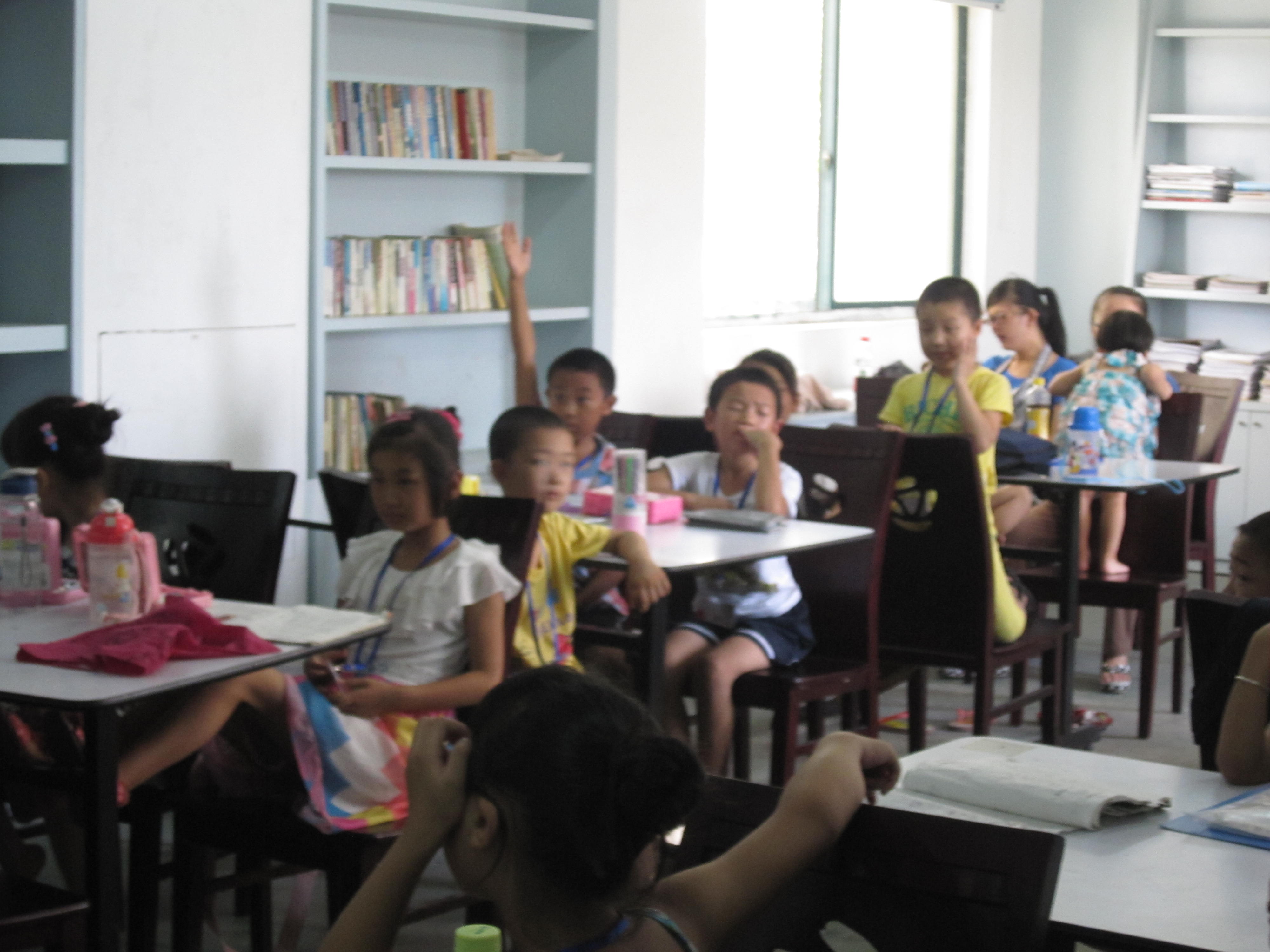 小学科学课程在目前的小学学习中还未得到普及,尤其在广大农村、民工子弟学校,孩子们的科普基础更是相当薄弱。考虑到这个情况,实践队有针对性地向孩子们开设了例如食物链的介绍、星系知识一百问等简单的科普课程。队员邵海雅以自然界中常见的动植物食物关系向孩子们抛出了若干问题,让孩子们通过小组讨论、各组之间的总结补充得出了食物链、食物网的简单定义,并通过引导孩子们积极思考,运用食物关系的有关知识提出多种消灭蝗虫的有效途径这一“实际沙场练兵”的方式,使孩子们真正掌握了这一科普常识。而孩子们对这些新奇的科学知识也表现出了极大的热情,小组讨论十分激烈,对其他组的答案也学会了分析共享以及简单的批判辩论,最后竟然提出了近10种有效的解决措施,他们丰富的联想能力、对知识快速的运用能力都使队员们刮目相看。
