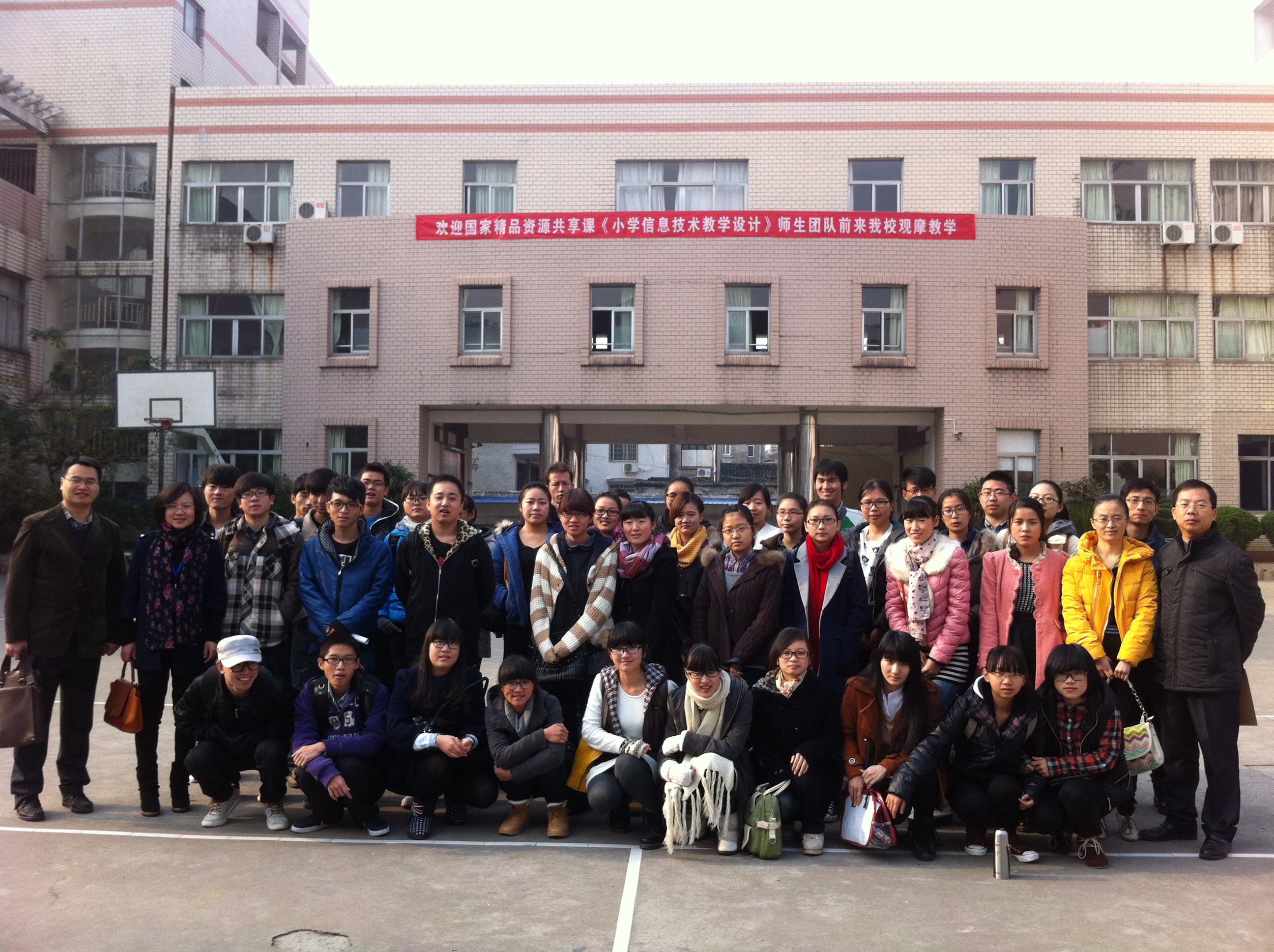 2013年12月12日,12教技全体学生于上午八点在北校门口集合,王佑镁老师、李伟老师、杨刚老师以及两位教育技术资深录播老师和同学们一起登上了前往昆明二小的校车。此次出行的主要任务是到昆阳二小重温小学课堂,学习小学信息技术老师的授课技巧与特色,并交流各自一日所学。