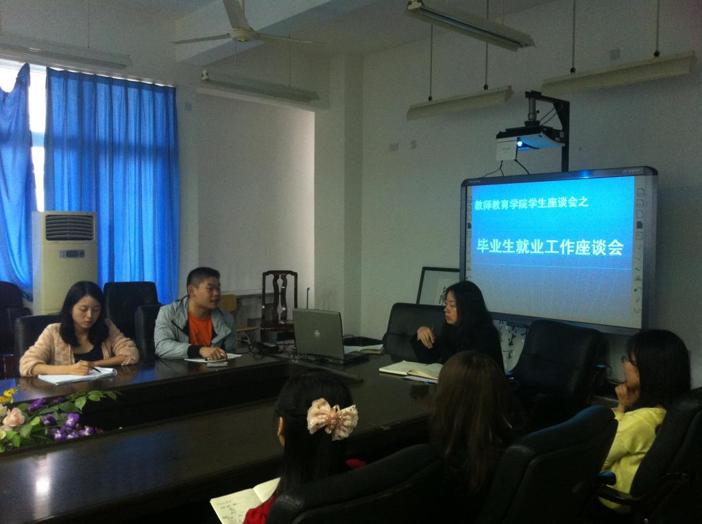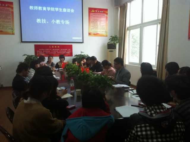 为广泛征求同学们对我校、我院在管理、教学、服务等各方面的意见和建议,进一步帮助同学们解决在学习、生活当中遇到的困难,我院在分别召开了毕业生、新生、研究生、心理系与学前系(本科)、小教系和教技系、学前系前三阶段学生等六场座谈会。我院领导、各系领导分别出席了各分场座谈会。