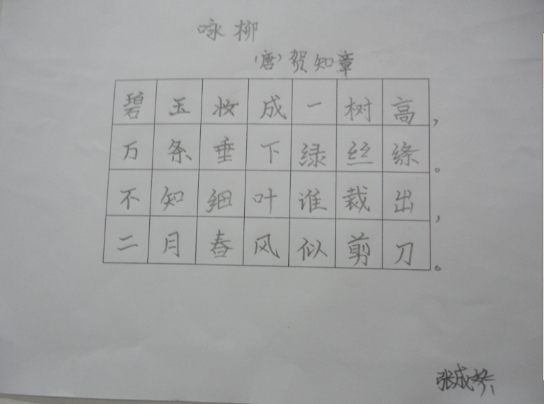 书法课是这一天的头一炮。知心姐姐实践队的队员们根据不同年龄阶段孩子的不同特征分别准备了相应的书法教学材料。小老师林丽娟首先给孩子们在黑板上做书写示范,寥寥几笔,几个大气的楷体字便跃然纸上,使孩子们佩服不已。接下来,丽娟同学向孩子们详细介绍了这些字的笔画顺序,并手把手地辅导学生写好每一个字。孩子们的课堂表现也十分活跃,不少孩子一连写了三四张字体练习,同时积极地请老师对自己的字进行指导。在课堂的最后,她对孩子们的书法作品做了针对性的讲评并提出了相关的改进建议,一些好的作品也被粘贴到教室的作品欣赏角处进行展览。