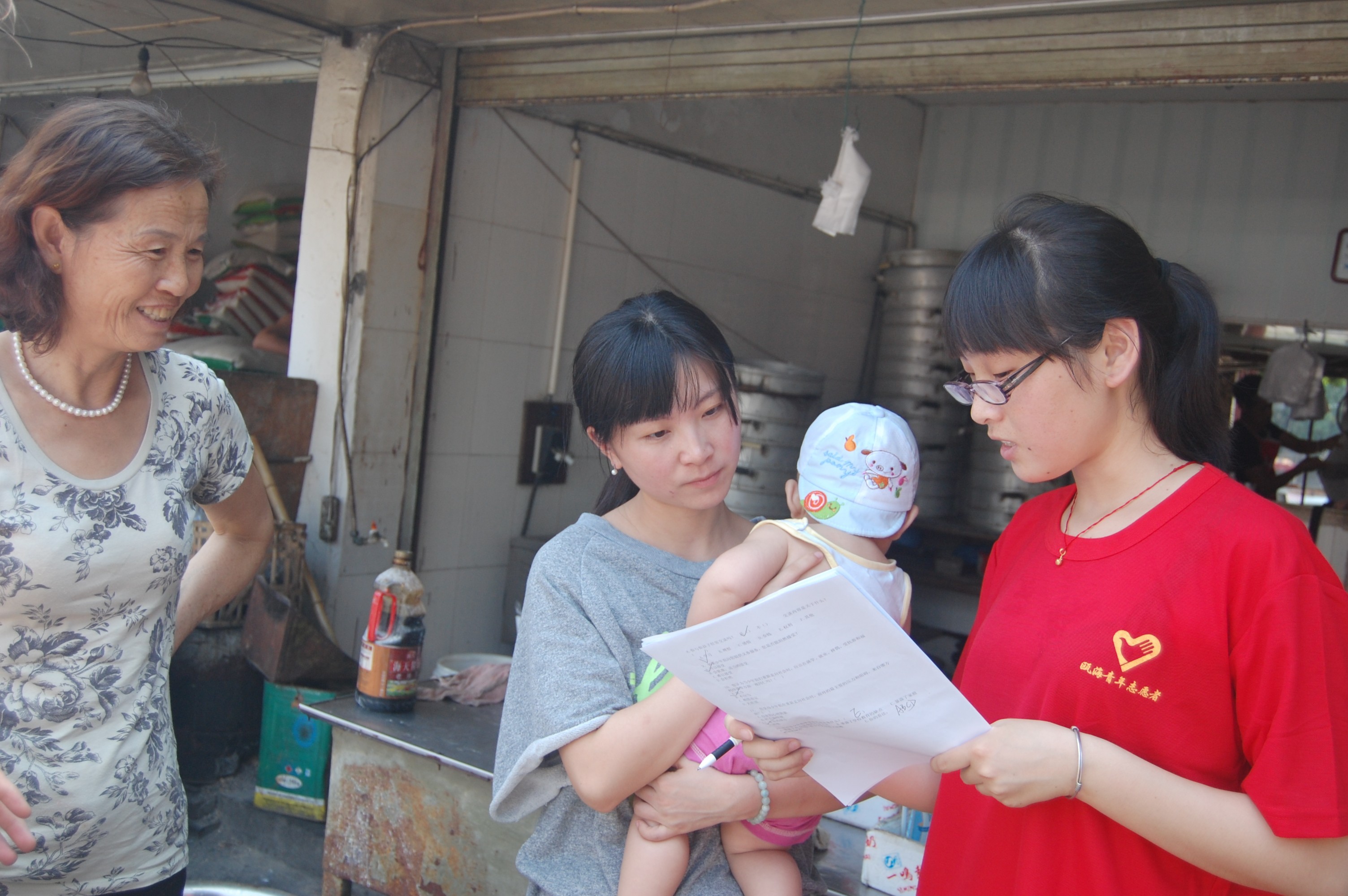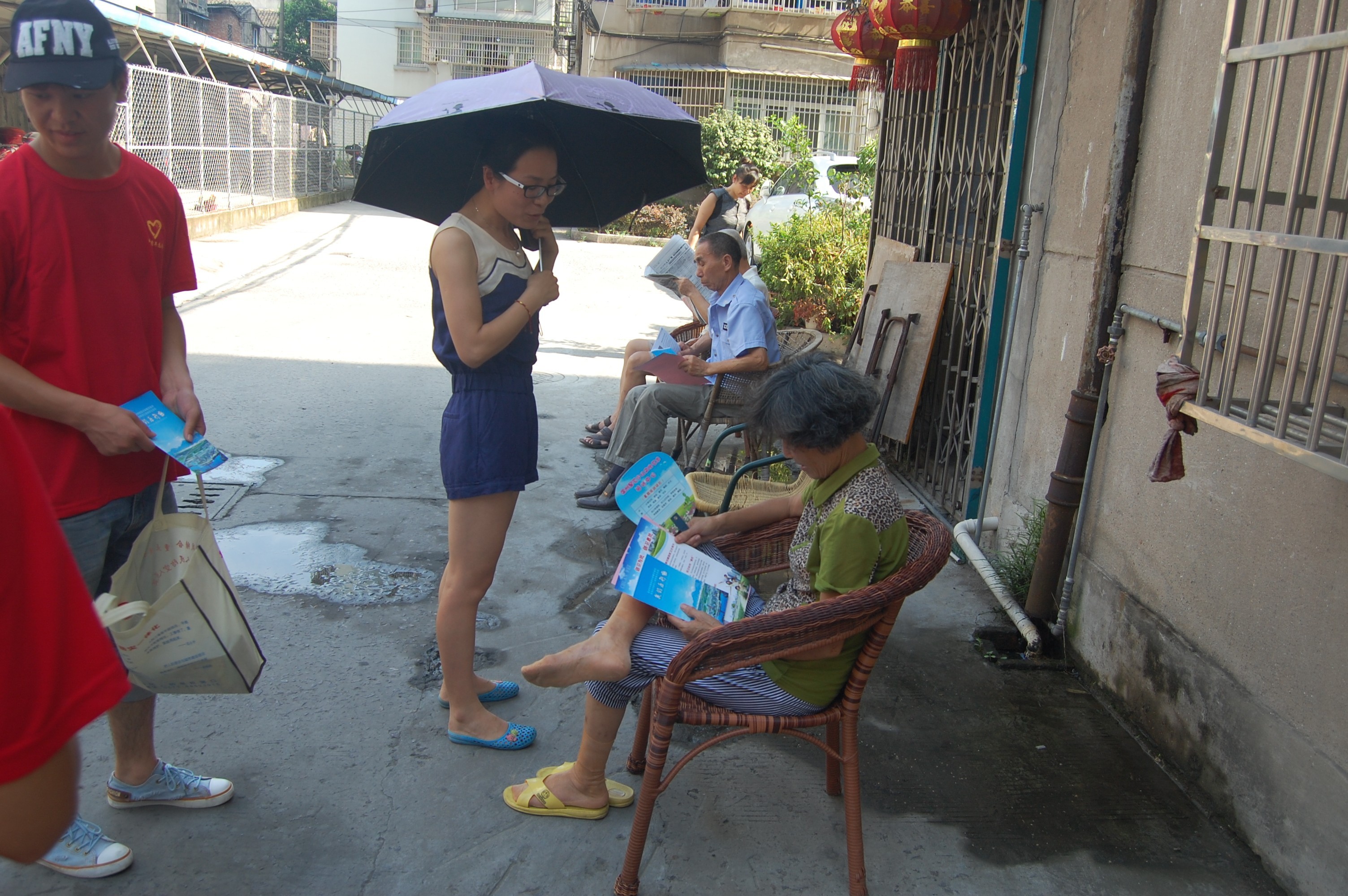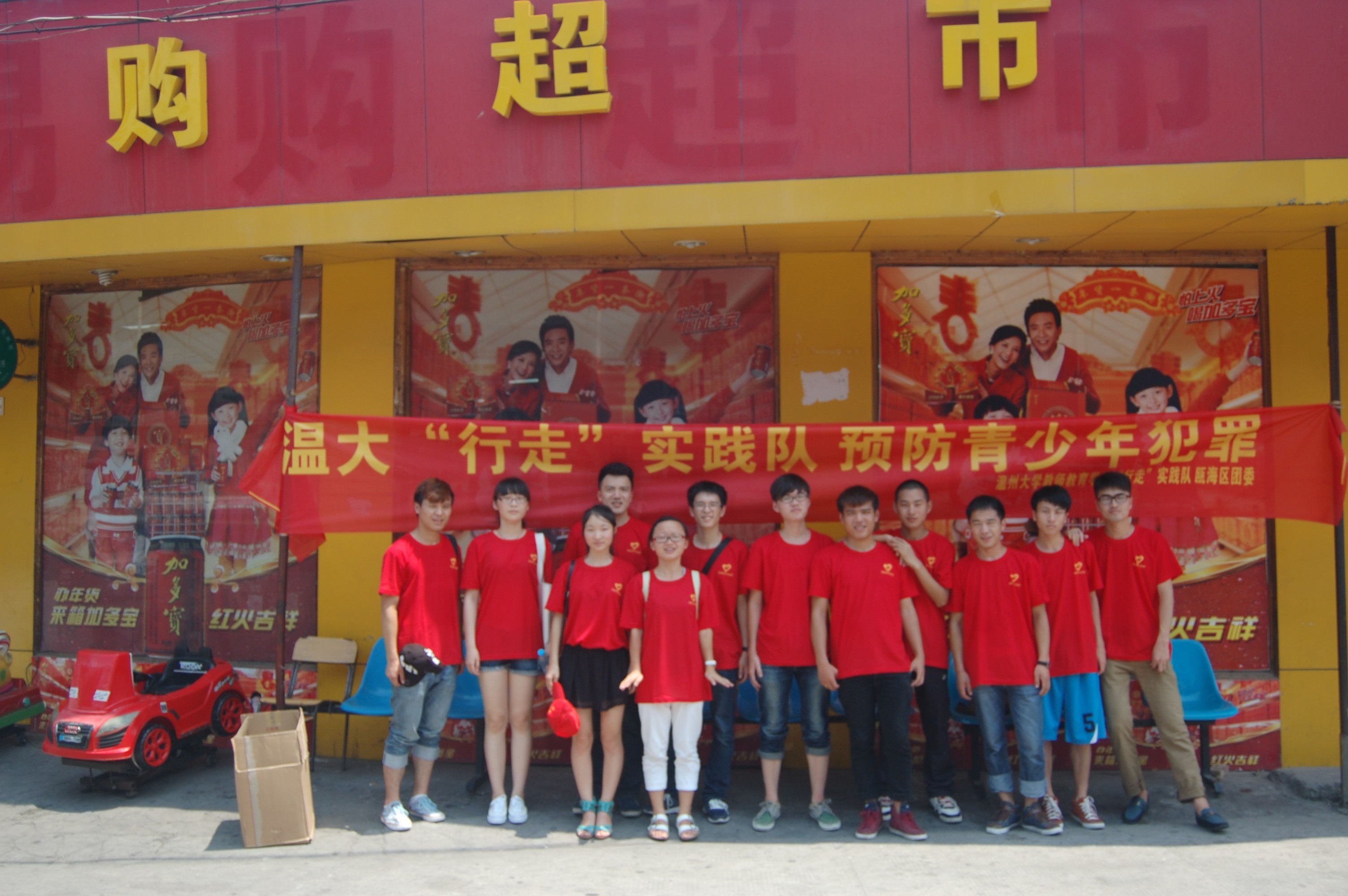 一大早,全体“行走”队队员穿着统一的红色队服在温职的车站旁集合。待队长交代完具体事宜,明确分工,开始了实践活动。分工下来,部分男生拉横幅布置场地,部分其他人则是分发预防青少年犯罪的宣传单,并且对社区进行了问卷调查。经过调查发现,大部分社区居民对此次关于青少年犯罪的调查都十分感兴趣,对于少年犯大部分都采取宽容态度,对自己的孩子这方面的教育也十分重视。