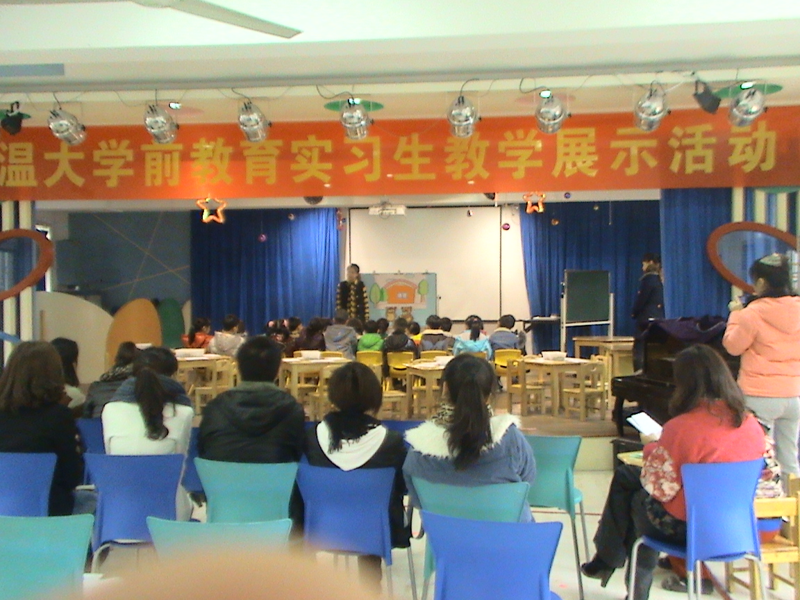 2011年12月22日,温州市第六幼儿园迎春园区的多功能厅里欢声笑语不断,由温六幼与我院共同举办的实习生教学展示活动在这里成功举行,我院08学前本的8位实习生在活动中发挥所长,尽情展示,为我们献上了8堂精彩纷呈,紧凑凝练的公开课。