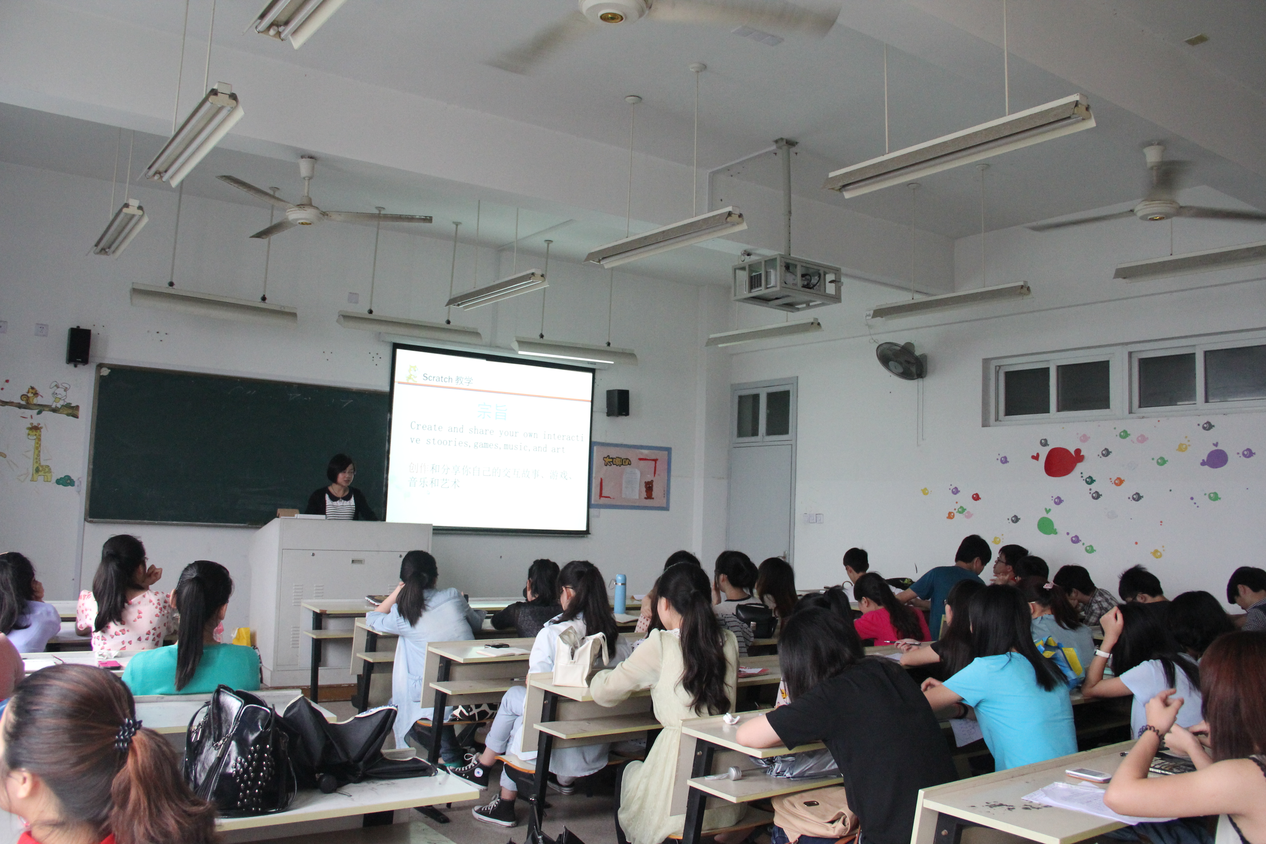 本期中小学名师讲堂第三场的主题是小程序,大世界,内容主要针对Scratch的教与学展开。谢贤晓老师分别从教师成长的五阶段、走进Scratch、Scratch教学、Scratch的发展前景四个方面来展开她的论述。在教师成长的五阶段中,老师为我们讲述了她的教师成长之路,为我们传递了教师路上的正能量。在这之后,老师为我们讲解了一款由麻省理工学院设计开发的面向少年的简易编程工具——Scratch。而Scratch教学的宗旨并不是学会编程,而是希望能通过这个工具搭建的平台让少年创作和分享交互故事、游戏、音乐和艺术。通过谢贤晓老师示范的Scratch小例子,我们感受到了它的魅力,也欣赏了些学生的创意作品。