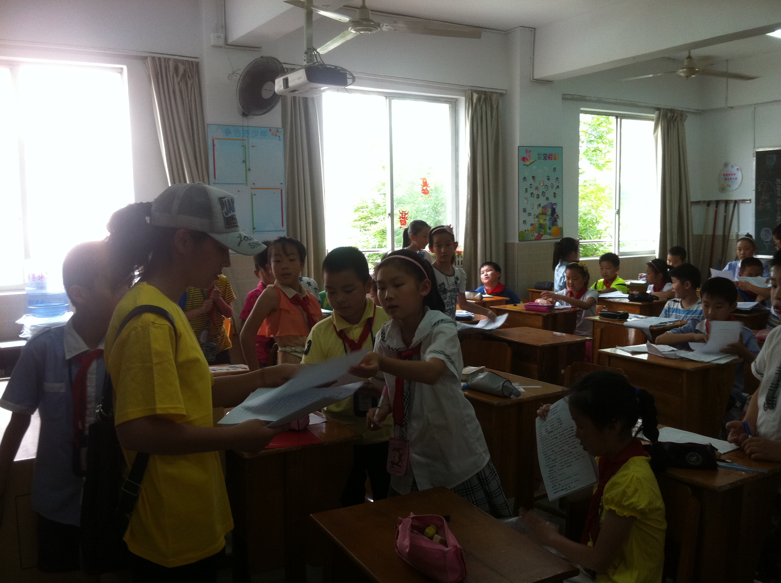 由于之前一天已经和校方领导进行沟通,茶山镇第三小学的学生老师们都非常欢迎我们的调查,因此今天的实践开展的特别顺利。我们先去教室向解释并说明来意,向小学生们分发问卷并由学生们答卷,最后我们将卷子整理起来收好。一切都有条不紊的进行。今天也正好是茶山镇第三小学的学生们来学校领取成绩单的日子,因此学校外面有许多家长前来接送孩子。我们没有放过时机,尽管天气炎热,但我们仍然耐着高温,同样对门口的家长们进行调查询问,努力地多做一些调查卷。