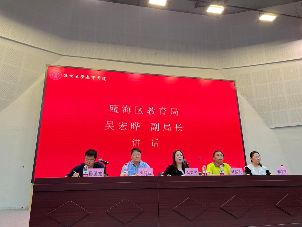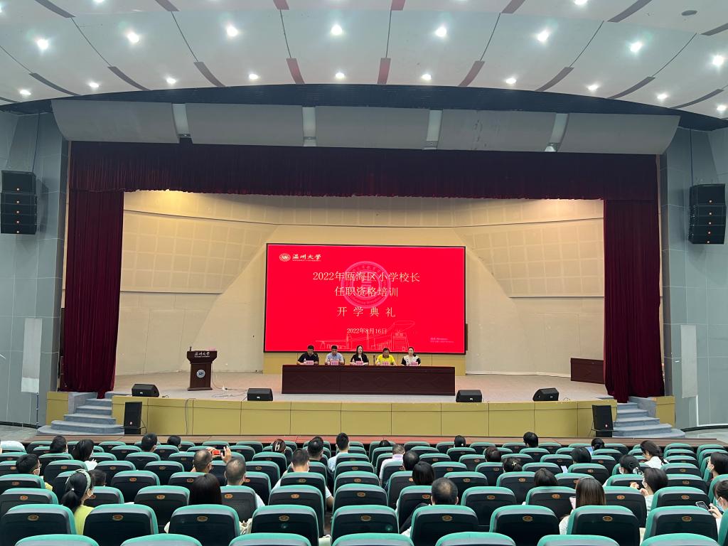 2022年8月16日上午,2022年瓯海区小学校长任职资格培训在p站视频 举行开学典礼。瓯海区教育局党委委员,副局长吴宏晔、瓯海区教育局组织人事科长谢建成、瓯海区教育研究院副院长董晓群、p站视频 副院长叶新东以及来自瓯海区的54名校长及后备干部参加了此次典礼。典礼由p站视频 培训中心主任陈强龙主持。