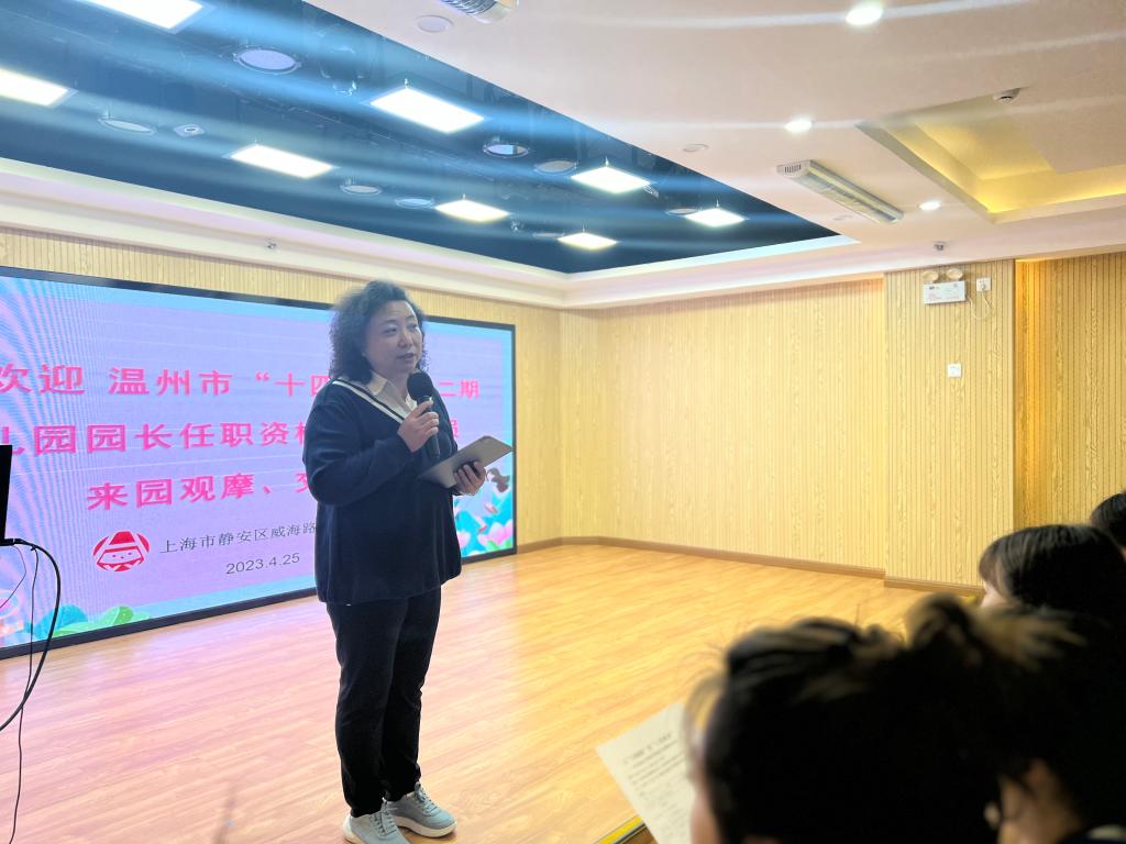 下午,学员们一同走进闵行区七宝幼儿园。园长丁春燕(正高级)教师以《扎根传统文化 培育时代新人》为题介绍了幼儿园的园所特色,表示在人文管理中,推行“强化管理”、“互相成就”营造整个团队互相协作、共同进步。副园长汪湜老师介绍了七幼课程《根植童心 育德启蒙》,结合实例让学员们对当下上海基于“幼儿发展优先”理念下开展的系列实践研究活动有了更深的了解。四位骨干老师带领学员进行案例分享、活动参观,使学员们进一步感受幼儿的快乐和发展,以及蓬勃向上的生命力。