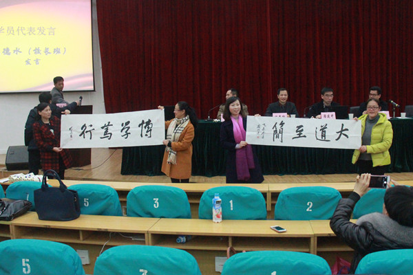 的师范气质词“博、爱、雅、艺”,对在座的校长班、园长班的学员提出了殷切希望,对于他们未来的工作和生活给予美好的祝福。