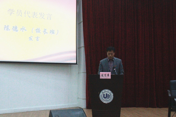 典礼最后,潘建中院长做了精彩讲话。潘院长回顾了自身学习工作经历,与在座的全体学员分享所感所悟,希望大家在今后的教育工作中要谋划学校(幼儿园)的目标定位,寻求前行方向,做学生的表率。