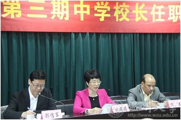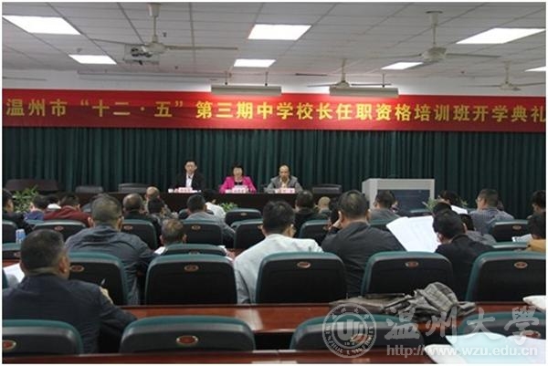 2014年4月22日上午,一年一度的温州市中学校长任职资格培训班开学典礼在p站视频 学院路校区继续教育大楼502报告厅召开。本次“十二·五”第三期中学校长任职资格培训迎来了温州地区66位中学正副职校长。我校党委副书记林娟娟,温州市教育局中小学教师教育办公室副主任、温州市教师教育院院长何民,我校教师p站视频 院长郑信军出席开学典礼,典礼由郑院长主持。