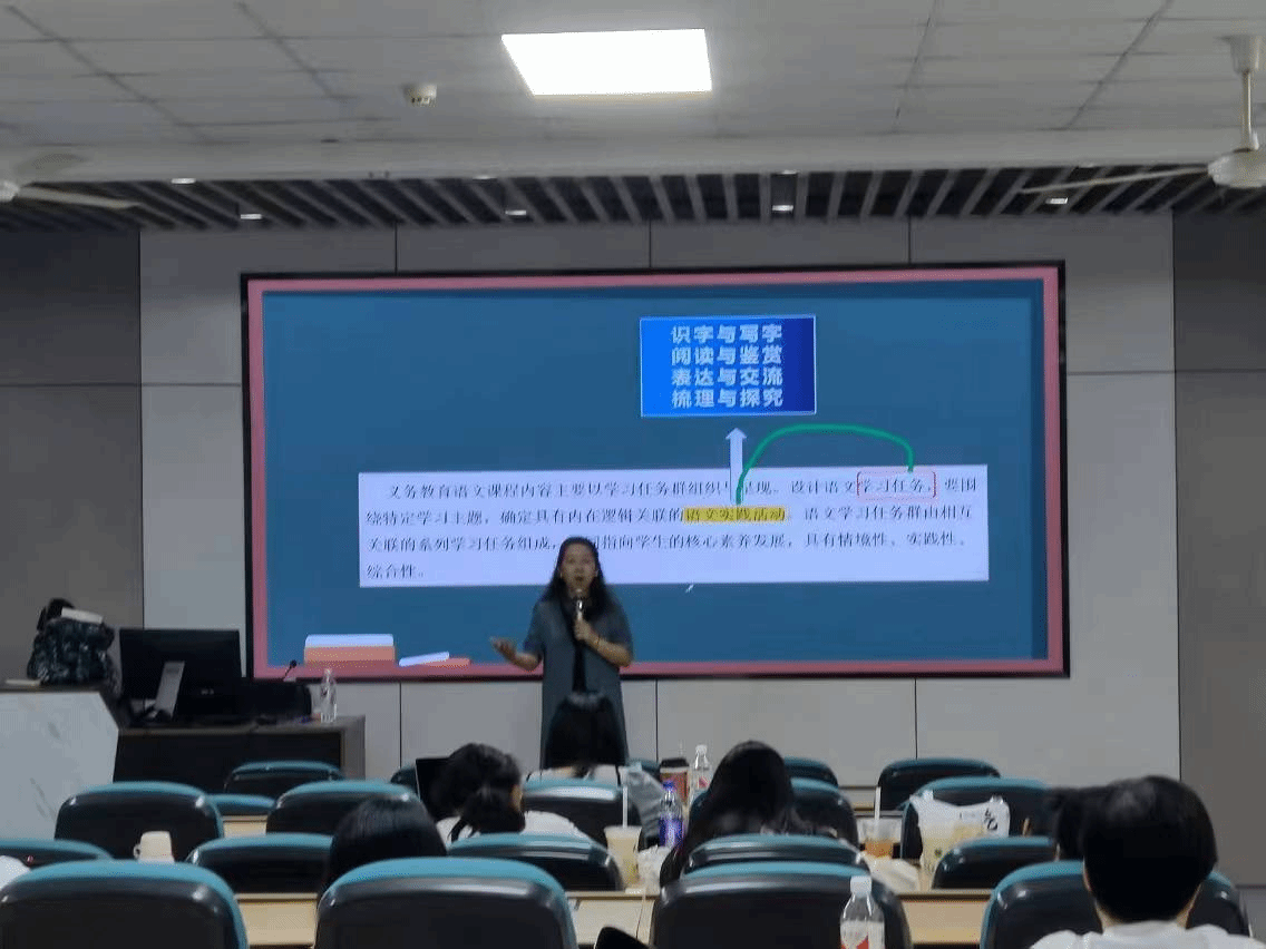 下午,p站视频 梅培军副教授开展了题为《单篇课文设计与语文要素、任务群、大单元之间关系》的讲座。讲座中提到全面提升学生语文素养是20年课改的追求,论述了全面提升学生的语文素养的重要性,其中重点在于要把握好素养型课程目标和结构化课程内容。讲座上,梅教师还向我们讲解了语文核心素养的实现路径,应当从真实的语文情境、统整的学习主题和典型的实践活动三方面进行,最终实现课程内容的变革,催动语文课堂教与学的改革。