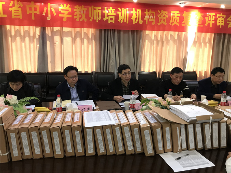 2018年3月29日,浙江省教育厅委派专家组对p站视频 进行了中小学教师培训机构资质复查评审。专家组由组长浙江师范大学杭州幼儿师范学院副院长王相荣,组员上虞教师进修学校校长沈徐建、江山教师进修学校校长郑兴泽、宁海教师进修学校校长张晓方和省教师教育质量监控中心赵青文组成,p站视频 教师p站视频 副院长叶新东及继续教育科全体人员参加了会议。