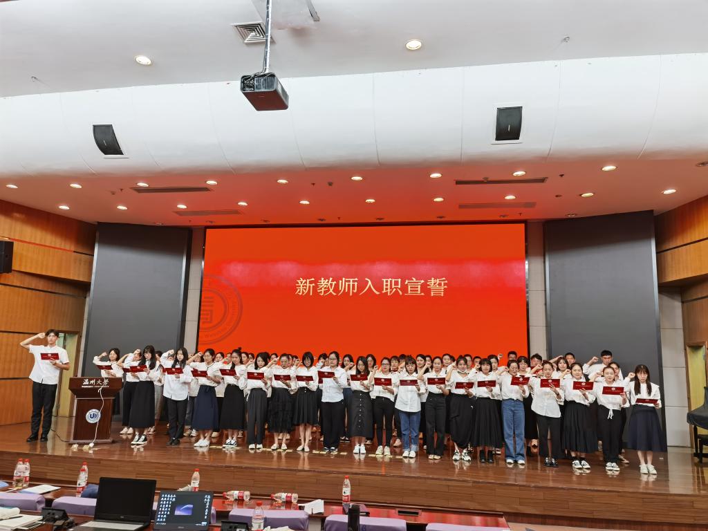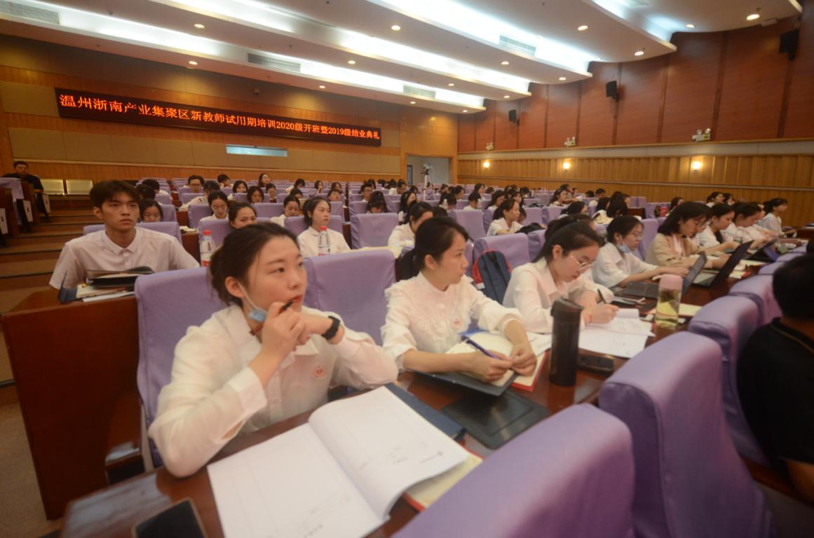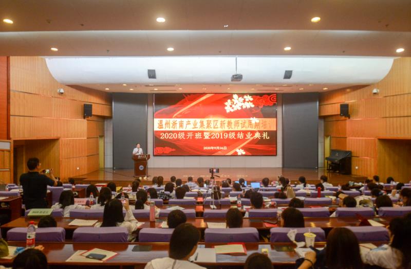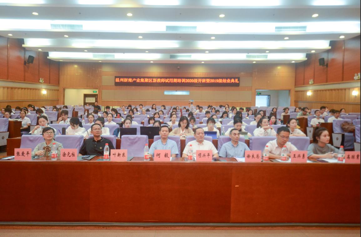 2020年9月26日,p站视频 党委何毅书记,集聚区文教体局党委委员、区社会事务服务中心副主任项兴平出席典礼并讲话。区综合人事处、研训处领导嘉宾及115名新教师共同出席了典礼。本次典礼由温大p站视频 叶新东副院长主持。