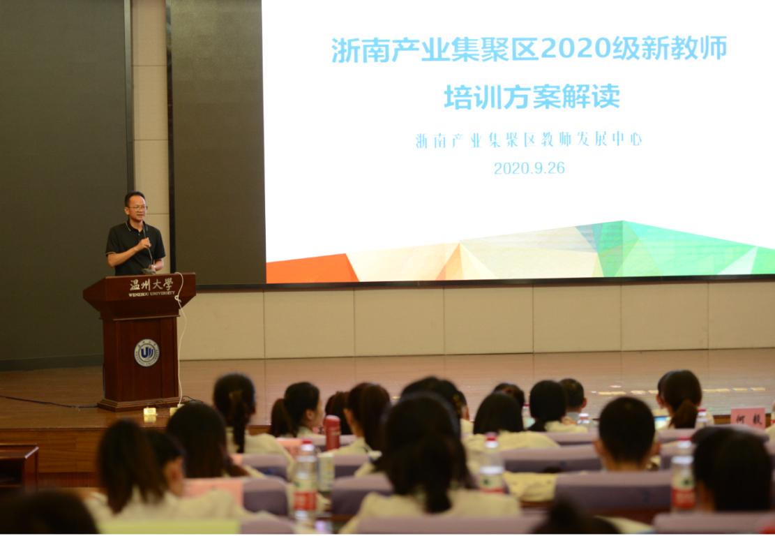 随后,研训处处长涂元柱就《浙南产业集聚区2020级新教师培训方案》从培训目标、培训课程、培训管理和培训考核四个方面进行详细的解读,引导新教师在迈入岗位的第一年快速地转变角色,适应环境,不断提升自我的专业素养与水平。