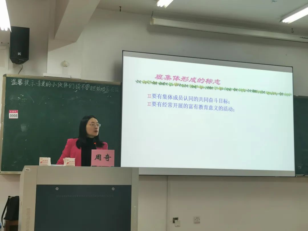 p站视频 周奇教授对2021级新教师进行了以“班主任工作新认识”为主题的培训。为了更进一步提高新任班主任的综合素质,提升工作,推进班主任队伍专业化发展,周奇教授从班级的定义、班级的特点、班集体发展的阶段、班集体形成的标志、班主任的意义、班主任的专业化成长之路这六个方面对新教师们进行了细致的指导,周奇教授以她特有的亲和力、幽默的语言、对教育的热爱与追求感染了在座的每一位教师,她爱的教育使各位新教师们受益匪浅,会场上时不时响起阵阵掌声。