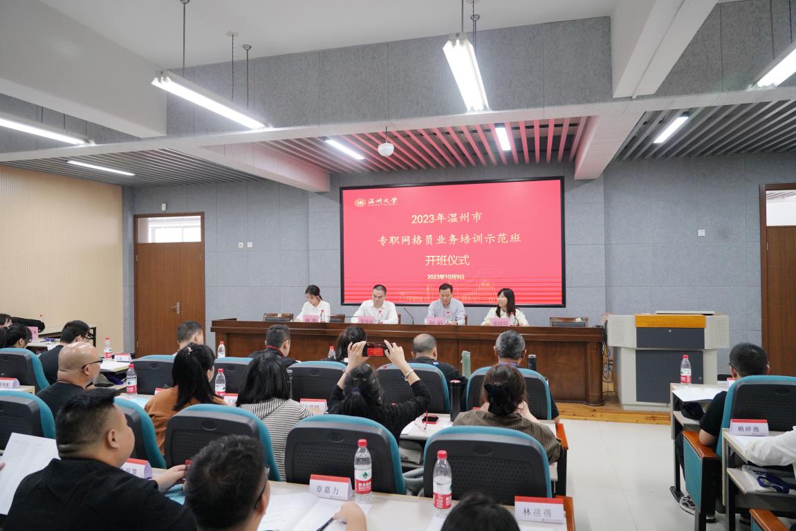 为进一步加强全市专职网格员队伍建设,服务全市基层社会治理能力提升,10月9日由温州市委政法委组织举办我院承办的2023年全市专职网格员业务培训示范班在学院9C301报告厅举行开班仪式。市委政法委有关处室负责同志、学院相关领导和各县市区90名专职网格员代表参加培训。