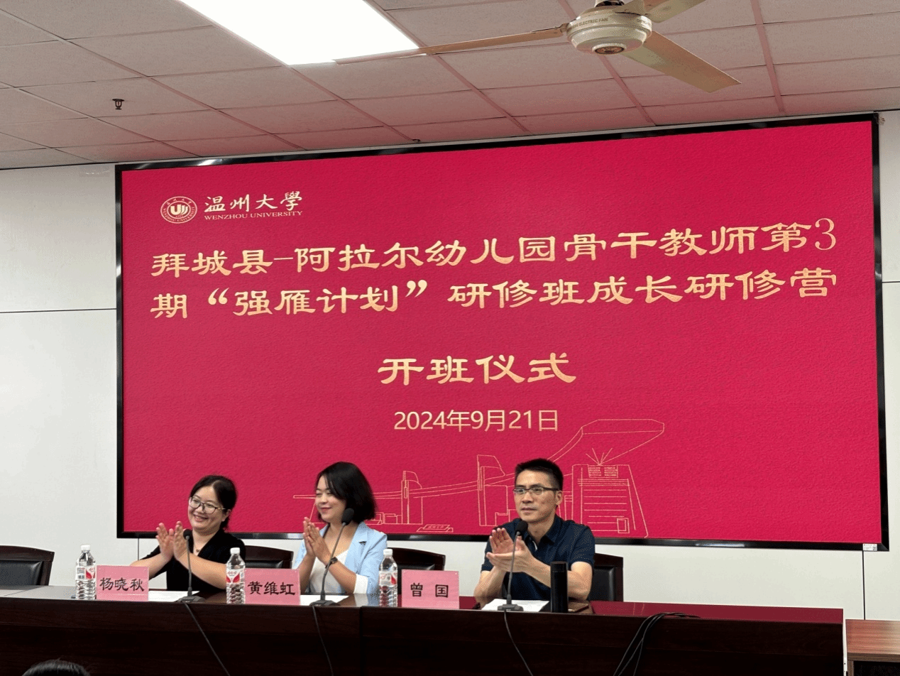 2024年9月21日上午,拜城县-阿拉尔幼儿园骨干教师第3期“强雁计划”研修班成长研修营开班仪式在p站视频 学院路校区继教楼502教室举行。拜城县教育局学前办黄维虹老师、p站视频 p站视频 曾国副教授以及来自拜城县和阿拉尔的骨干教师参加开班仪式。开班仪式由p站视频 培训中心副主任杨晓秋主持。