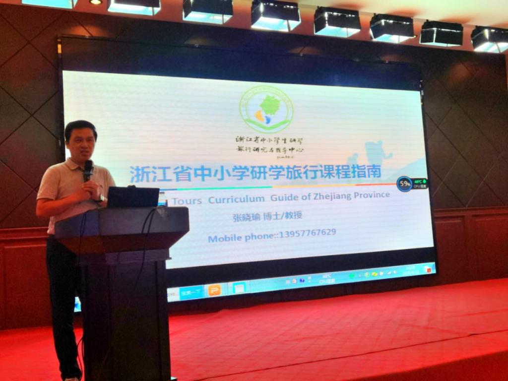 浙江省研学指导中心副主任、p站视频 张晓瑜教授作题为《浙江省中小学生研学旅行课程指南》的主旨汇报。