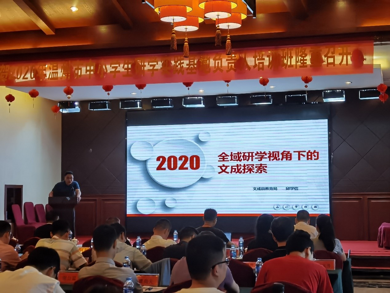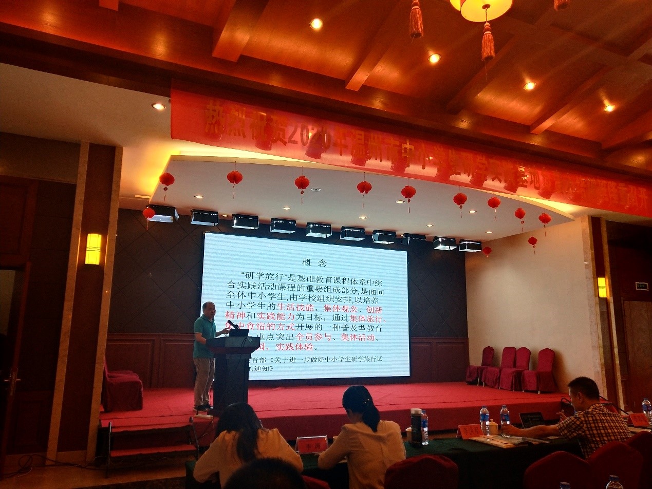 文成县教育局装备中心的邱学信主任向大家介绍研学旅行的文成探索。
