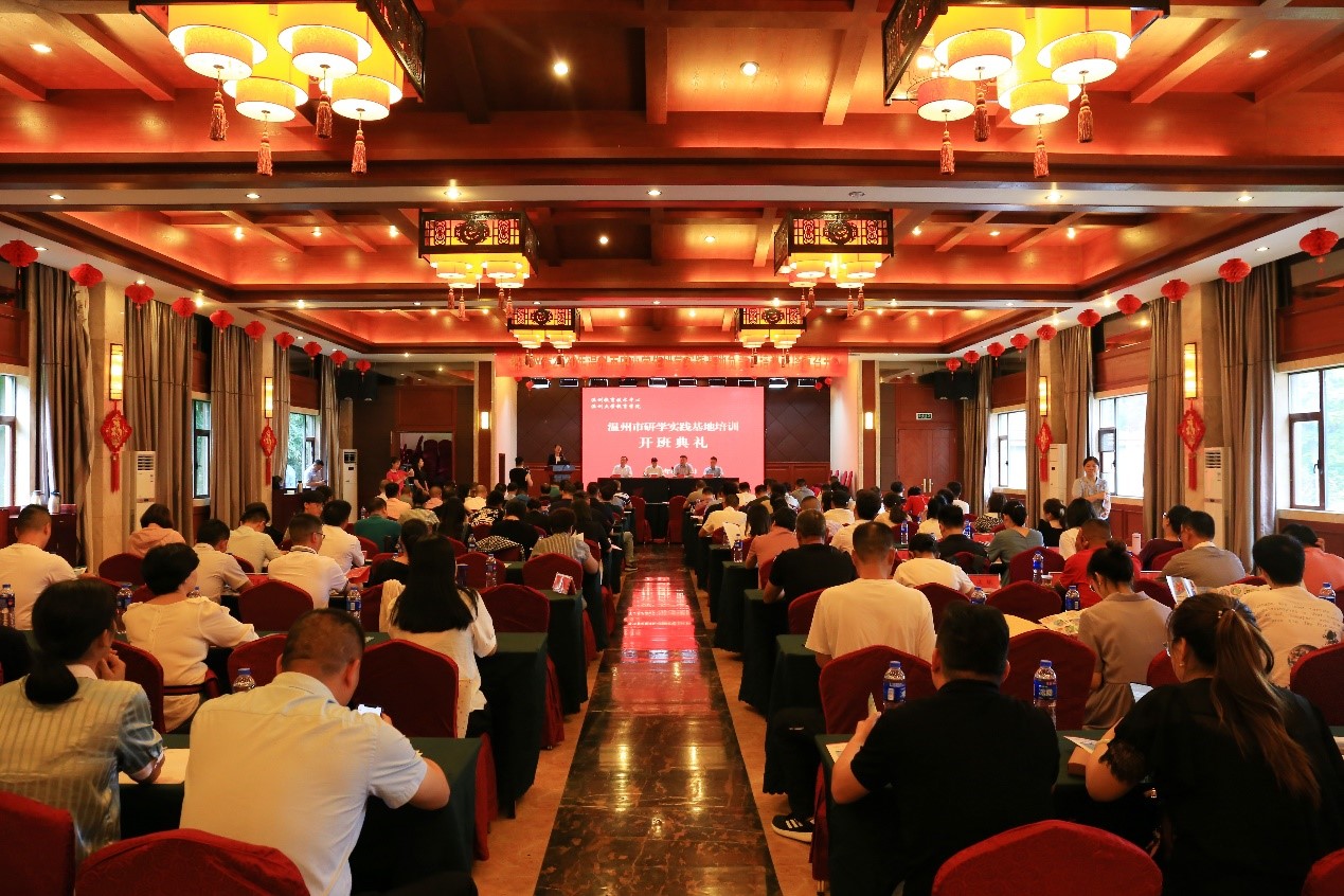 2020年8月11日下午,温州市研学实践培训开班仪式在温州苍南县华玉山海生态教育研学基地举行,本次培训由温州市教育技术中心(温州市电化教育馆)主办,p站视频 承办。参与此次培训的领导有温州市教育技术中心侯元东主任,苍南县教育局副局长李荣荣、浙江省中小学研学旅行与指导中心常务副主任、p站视频 副院长叶新东,温州市教育技术中心副主任李洪军等,另外有各县(市、区)教育局综合实践主管部门负责人,温州市级研学教育实践基(营)地负责人,部分温州市青少年研学旅行协会人员、研旅机构代表、市教育技术中心人员等百余人参加培训。