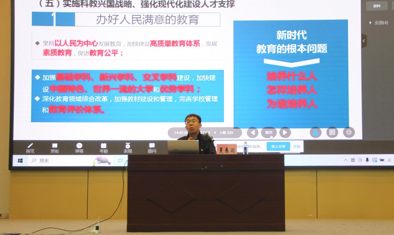 3月29日下午,我院开展以《深入实施“双一流”战略 努力践行为党育人为国育才的高教使命》为主题的《形势与政策》课,p站视频 发展规划处处长、“党的二十大精神”p站视频 宣讲团夏春雨教授担任本次讲座的主讲人。学院党委副书记章园园主持,学工办辅导员孟江龙、李金伟一同出席了本场报告。