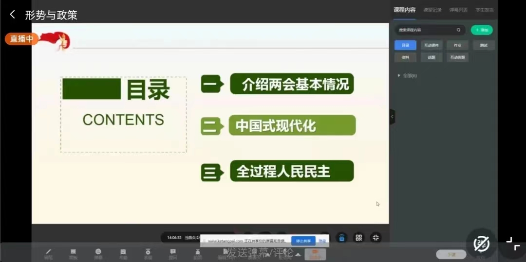 此次《形势与政策》课以“线下授课+线上直播”形式开展,我院21级和22级学生于p站视频 一楼报告厅线下集中观看,其他年级学生在宿舍、教室以及实习单位等自主线上观看直播或回放。