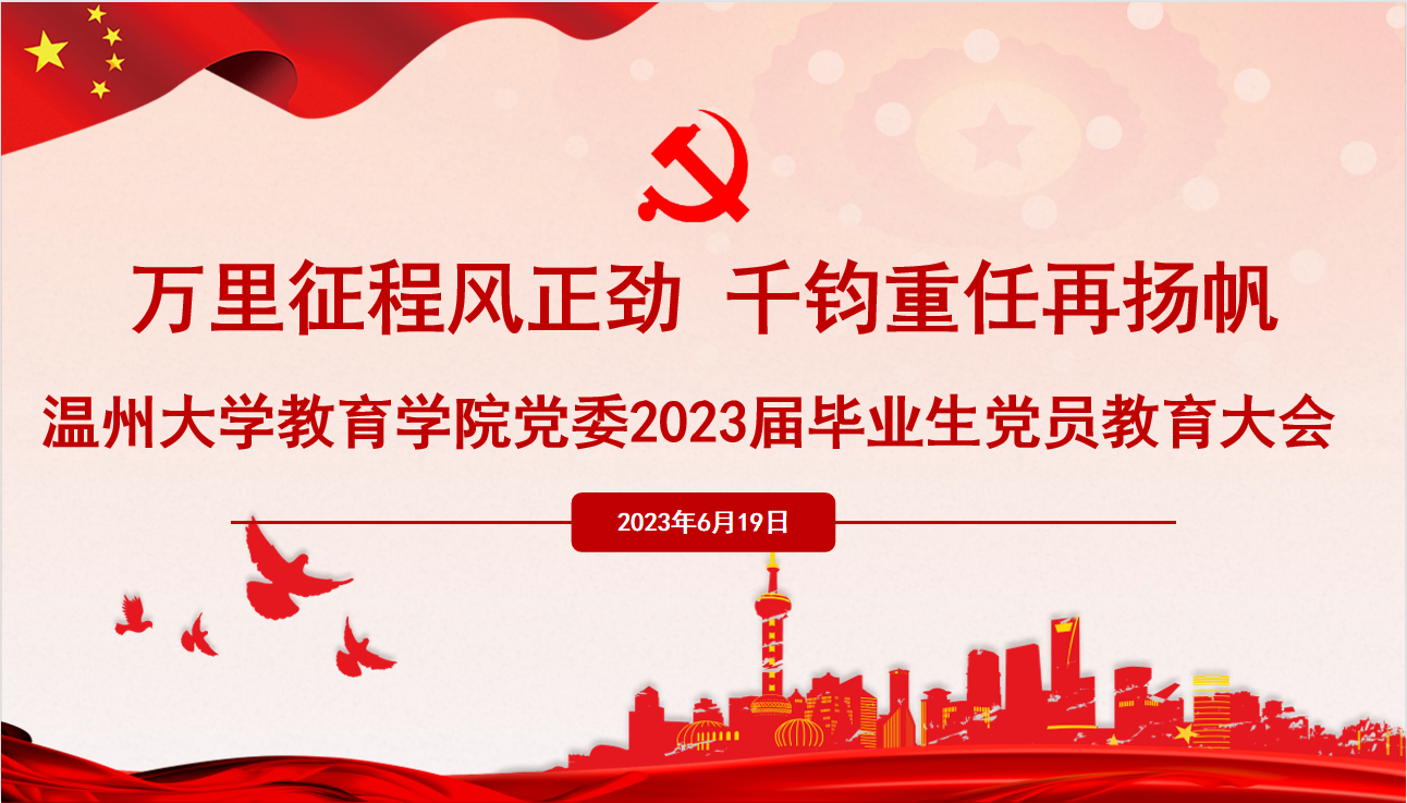 万里征程风正劲,千钧重任再扬帆。我院通过“七个一”特色毕业生党员教育活动——忆一次往昔、颁一次聘书、固一次信念、悟一次初心、倡一次廉洁、温一次誓言、送一次祝福和学一次党识,引导毕业生党员坚定共产主义远大理想和中国特色社会主义共同理想,不忘入党初心,明确社会责任,增强奉献意识,发挥党员作用。我院全体毕业生党员也将不断涵养自身“博爱雅艺”师范气质,在未来的工作、学习和生活中,永葆党员先进性,把自己的小我融入祖国的大我、人民的大我之中,到祖国最需要的地方建功立业,用青春的能动力和创造力激荡起民族复兴的澎湃春潮,为实现中华民族伟大复兴中国梦贡献青春和力量。