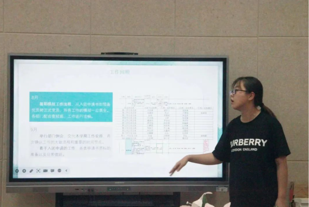 服务部王桐欣从党服的排班、党员联系新生寝室、党务工作会议、政治生日祝福和日常的义工管理五个方面展开,介绍并回顾了各项工作的内容,强调了各项工作的注意事项,对未来工作提出设想。