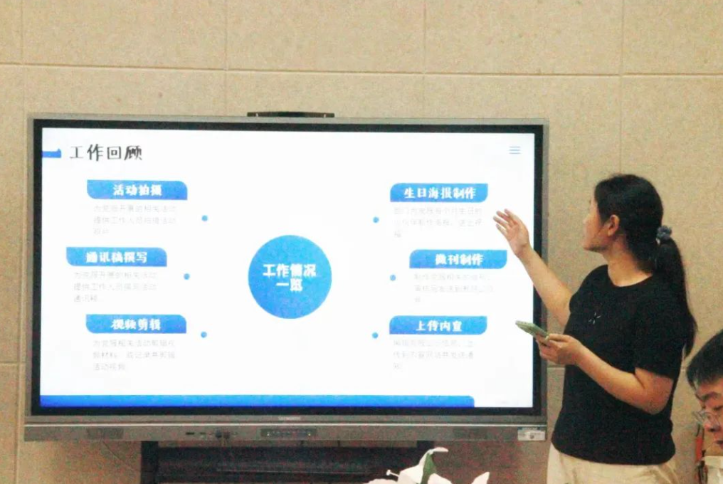 宣传部吕慧焱围绕工作回顾和学期工作计划两方面展开,对上学期工作进行总结和介绍,并表示在日后增强宣传部自身以及与党服其他部门的联系,协助其他部门完成工作,及时反思与总结,积极进取,建设更好的党服宣传部。