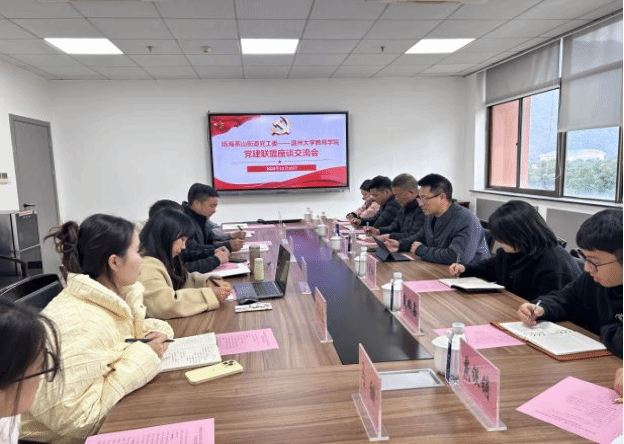 12月10日下午,瓯海茶山街道党工委蔡争伟一行来访我院洽谈党建联建工作,我院予以热情接待,双方在北8-408会议室进行座谈交流。