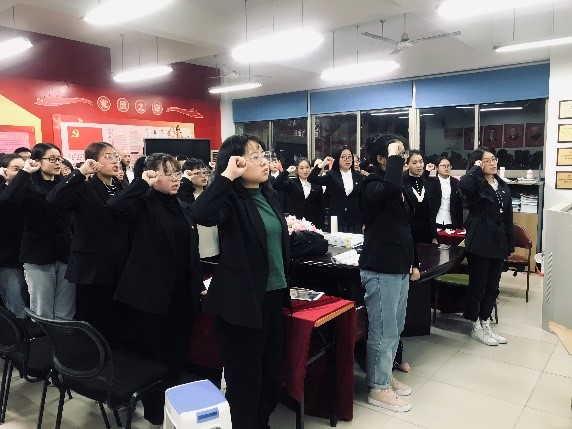 2020年12月9日,第一学生党支部中共预备党员转正大会在p站视频 9A410举行,会议由支部书记潘士杰同志主持,该支部全体党员参与此次会议。经党支部大会决议,一致同意骆怡平、史家乐、曾睿、张孟娟、方园园和詹嘉琳六位同志按期转为中共正式党员。