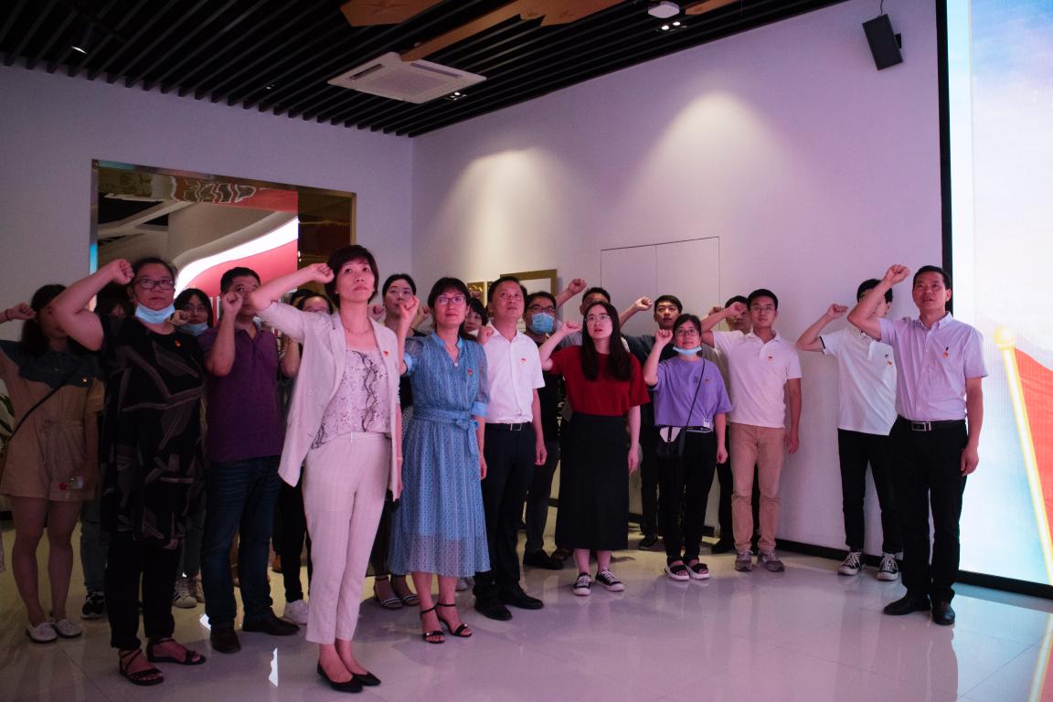 在国旗荣耀厅中,全体党员在何毅书记的带领下,面向党旗,举起右手重温了入党誓词,一字一句,掷地有声,宣告着大家将以更加务实的工作作风、更加饱满的工作热情,投入到学院和学校的建设中去。