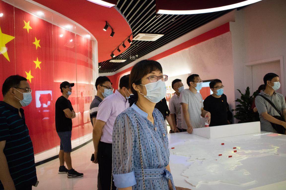 随后,大家一同前往国旗知识厅,一起详细了解国旗的诞生历程,学习国旗的相关知识,边参观边交流,借助木活字国歌墙灯光秀、真人体感互动、亲身体验红旗制作、3D换脸合影等多元化高科技手段,让全体党员仿佛身临其境一般见证了祖国崛起的历史性时刻,共同回顾中国共产党一路走来的艰辛历程以及辉煌成就,重温中国共产党波澜壮阔的历程。