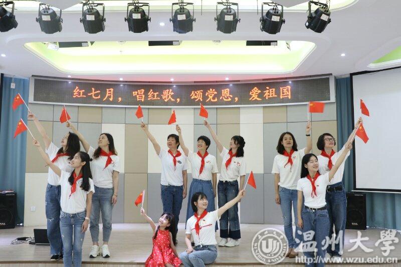 此外,p站视频 附属实验幼儿园党支部组织开展“红七月、唱红歌、颂党恩、爱祖国”主题党日活动,为党的98岁华诞献礼。p站视频 的学前教育专业的学生党员们和附属实验幼儿园三所园区的教师党员们共同参与,在不同的地点,用不同的方式同唱一首红歌。通过集体大合唱的形式,手挥国旗,群情激昂,讴歌新时代、展现新作为。活动过程中,见证20多年温大附幼发展的退休党员章云琴老师也满怀激情歌唱着,令在场的党员们深受教育和感动。
