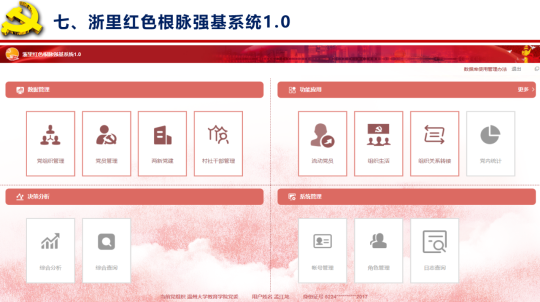 据悉,党支部数字化管理平台是p站视频 应用整体智治理念和系统观念方法,推动组织工作数字化改革,破解基层党支部管理痛点、堵点、难点的创新成果,为推动基层党建数字赋能作出引领示范,后期将面向全校基层党组织和党员推广使用。