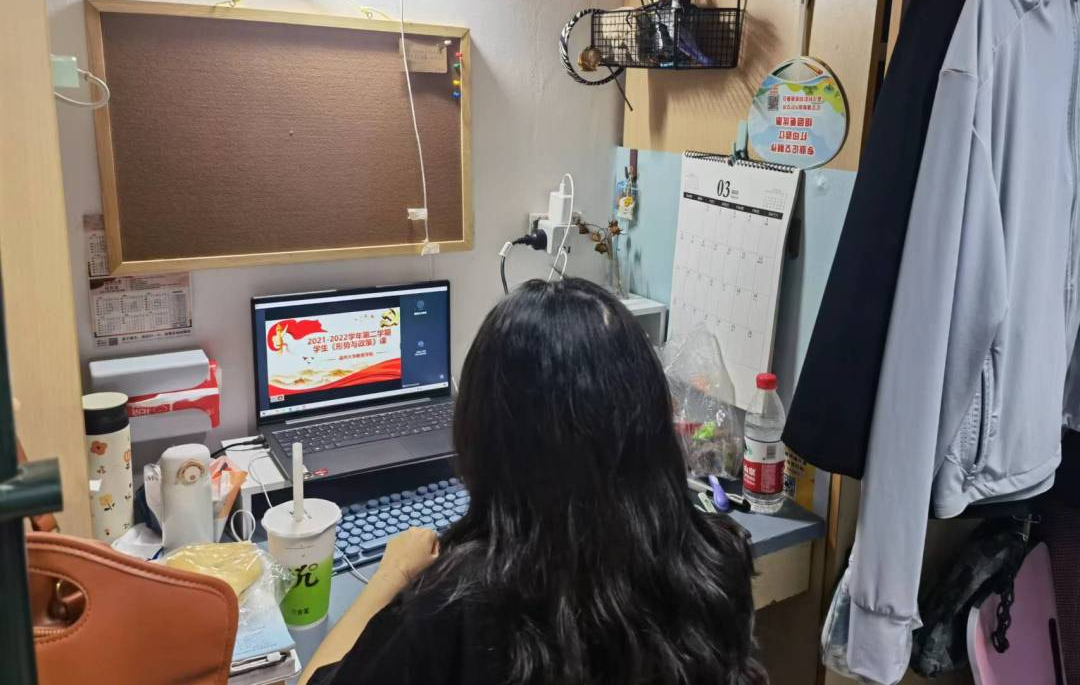 此次《形势与政策》课以“线下授课+线上直播”形式开展,我院21学前本1和21小教2的两个班学生在教院9C301会议室集中学习观看,其他学生在宿舍、教室自主线上观看直播和回放。