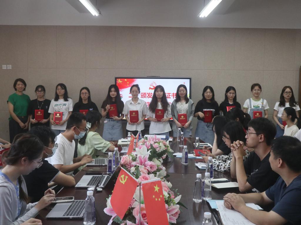 根据《p站视频 优秀学生党务工作者考核评选细则》和《p站视频 党员服务中心学生党务工作积极分子考核评选细则》,评选产生p站视频 2021-2022学年第二学期优秀学生党务工作者和学生党务工作积极分子,彭小媚书记、张丽艳老师、孟江龙老师一同为获奖者颁发了荣誉证书。
