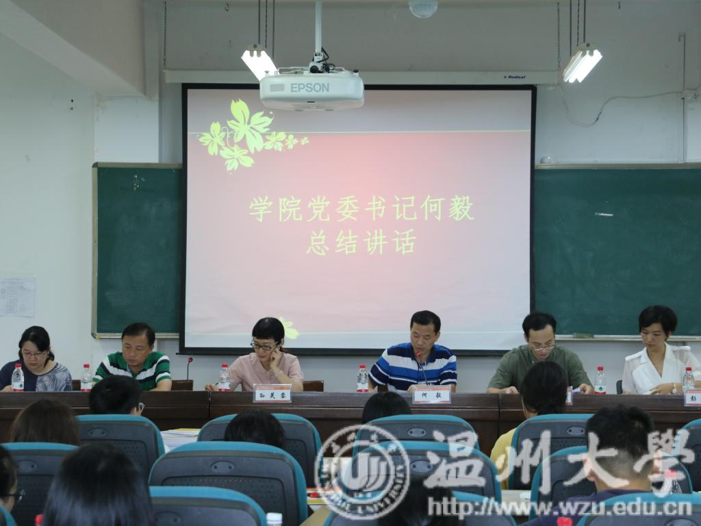 何毅书记作总结讲话。何毅充分肯定了学院教师在这个“暑”而不“假”的假期中为学院、学生工作做出的贡献。在学校奋力推进“三大目标”的新形势下,他从三个方面分析了本次会议的重要意义。首先,这是在全面推进新时代高校思想政治教育工作的形势下召开的一次重要会议。何书记强调,班主任作为大学生思想政治教育和学生管理工作的主要实施者,是协助辅导员开展工作、进行学生管理服务的主要力量,肩负着为国育才、为国储才的光荣使命。其次,这是在全校奋力实现三大目标和落实全国全省系列重要会议精神的背景下召开的一次重要会议。会议既是暑期系列会议精神的传达,也是我院“三全育人”综合改革试点的动员部署,他希望能够将“三全育人”的十大方面工作扎扎实实地推进下去,通过一段时间的努力,形成“三全育人”的良好态势。最后,这次会议也是我院党建与思想政治工作站在新起点、面临新形势的背景下召开的一次重要会议。会上,何书记结合当前的形势,对班主任工作提出几点建议:一是要始终坚持正确的方向引领;二是要引导学生树立正确的发展导向;三是要沉下身段真正深入班级群体。
