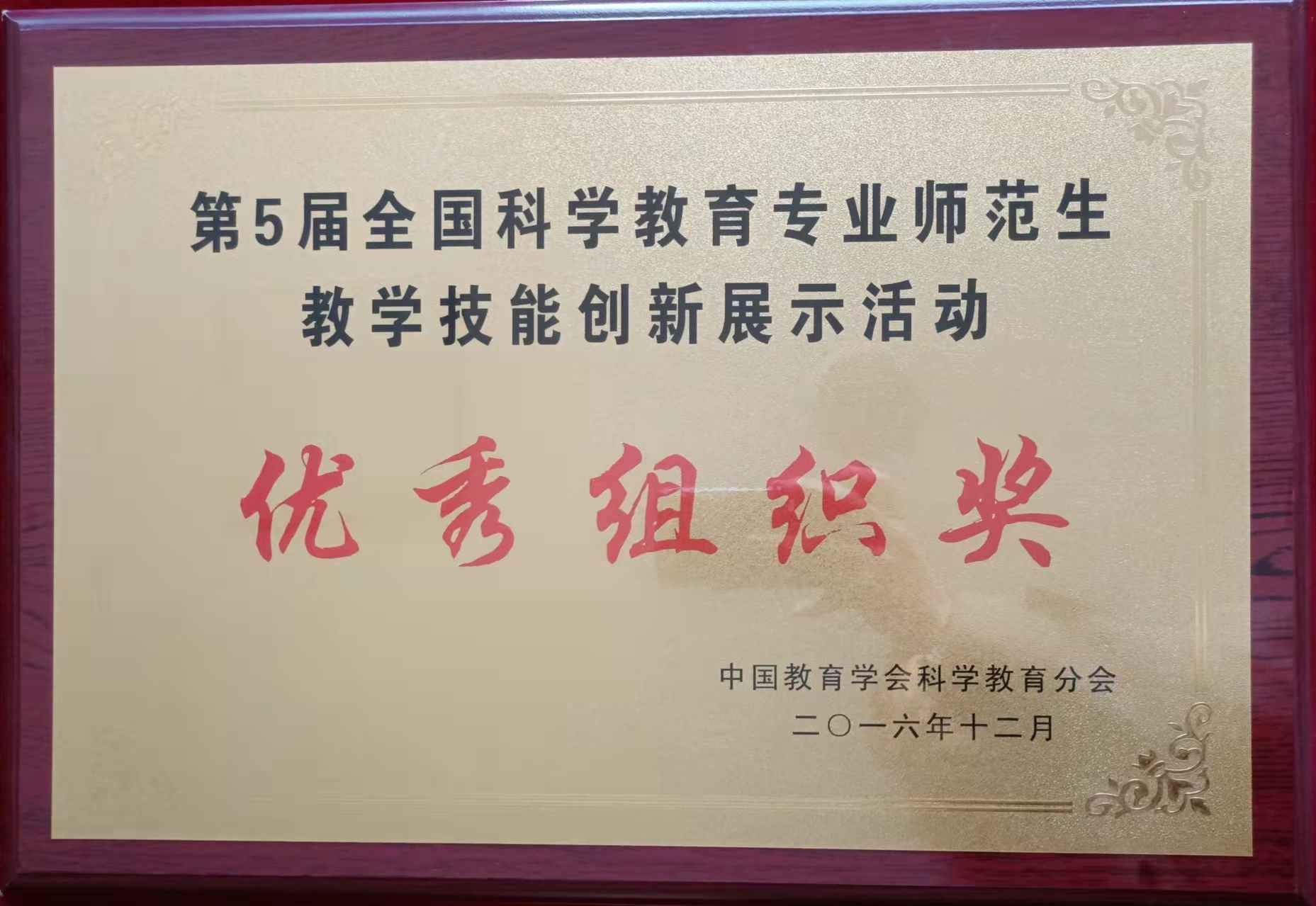 第5届全国科学教育专业师范生教育技能创新展示活动优秀组织奖(2016-12)