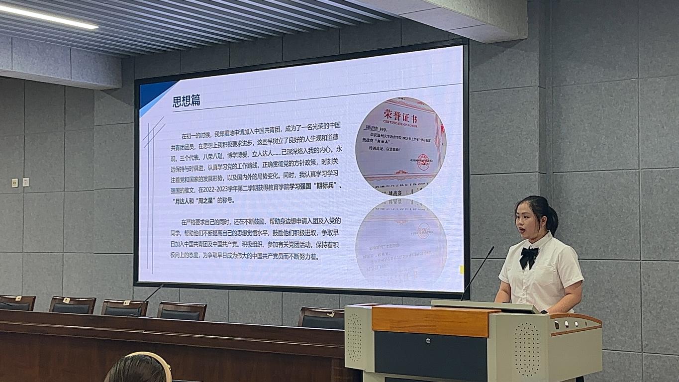 评审环节中,评审小组根据候选学生的展示内容,结合同学们的学习成绩、综合成绩、在校表现、个人能力等多方面进行了综合考评。经评审小组综合考量,拟推荐陈怡佳等四位为2022-2023学年国家奖学金获得者(含候补1人),同时推荐陈怡佳同学参加国家奖学金特别评审奖校联评。